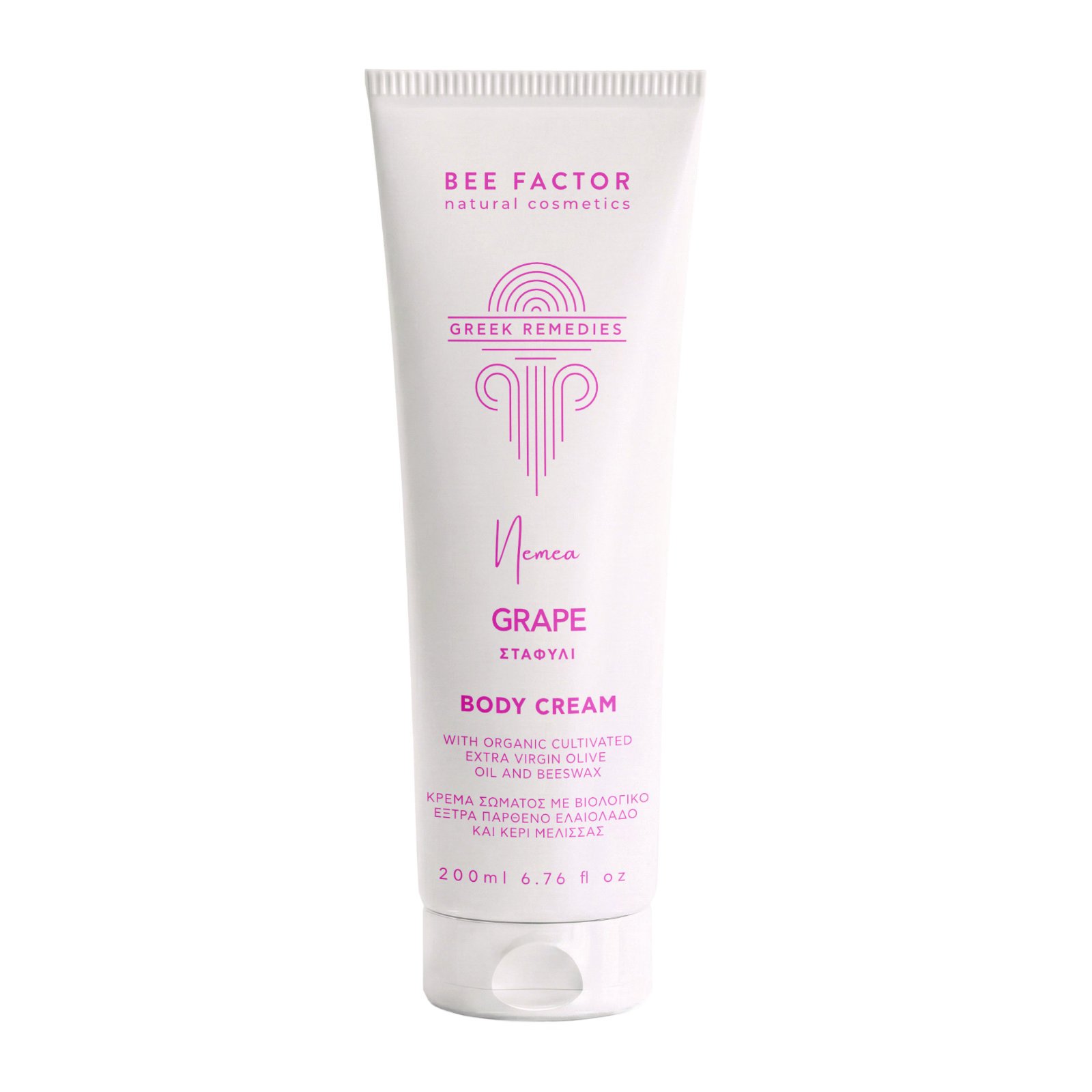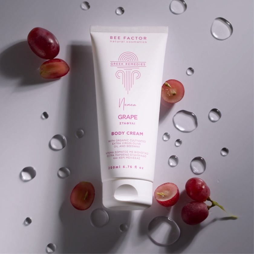 La Crema Corporal Revitalizante de Uva de la línea Greek Remedies extrae su poder del extracto de uva griega procedente de Nemea, Corintia—una región reconocida por sus viñedos ricos en antioxidantes.