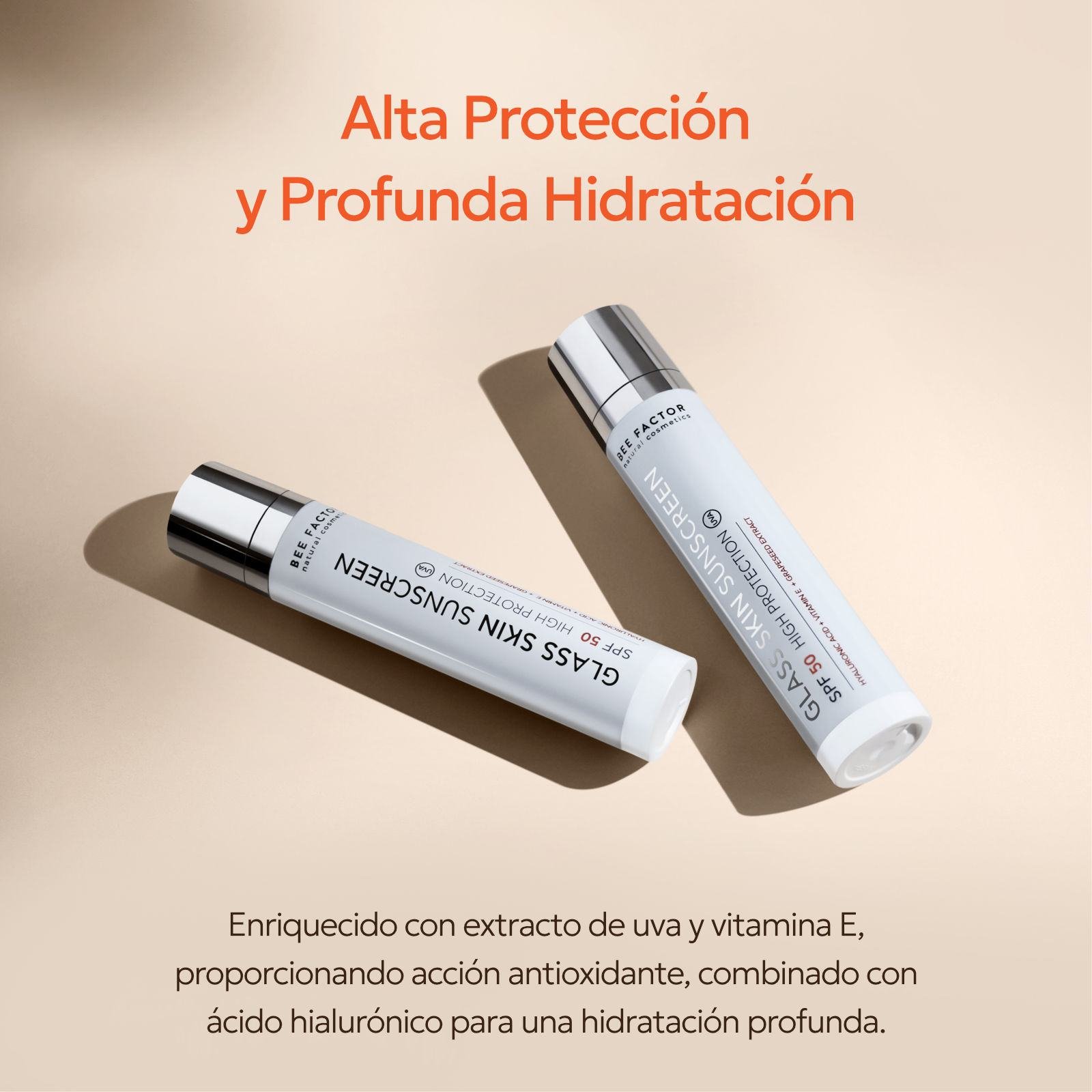El Protector Solar Facial Glass Skin SPF50 es un protector solar avanzado que combina una alta protección solar con beneficios activos de cuidado de la piel. Diseñado para el uso diario, protege eficazmente frente a la radiación UVA y UVB mientras mejora la hidratación y la luminosidad de la piel.